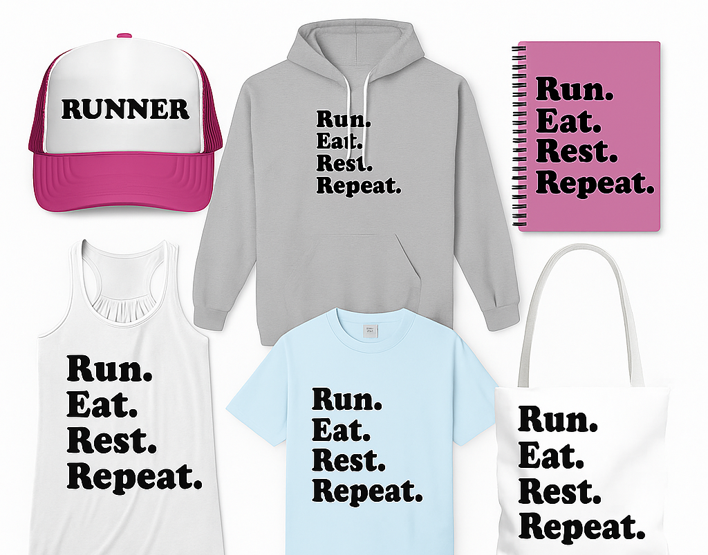 Run. Eat. Rest. Repeat. Hoodie — Minimalist Runner Sweatshirt